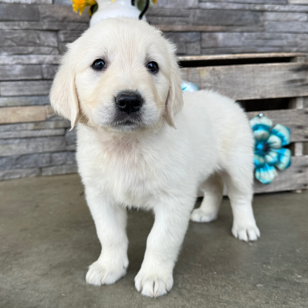 Hi, I'm Treva! I'm a 8-week-old female Golden Retriever with a beautiful english cream coat, born on April 4, which makes me an Aries sign, once I'm grown enough to leave my litter. When I reach my adult size, I should weigh between 45–75 lbs. I'm AKC registered. I'm ready to be your loyal companion through thick and thin.