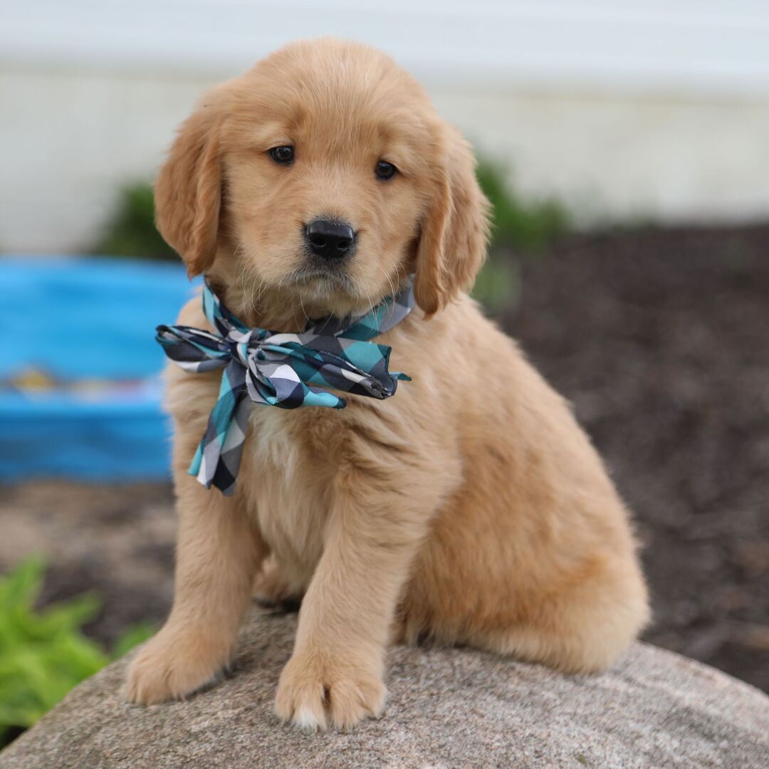 Hi, I'm Finch! I'm a 9-week-old male Golden Retriever with a beautiful dark golden coat, born on March 1, which makes me a Pisces pup. I am ready now to plan my trip to my forever family. Once I reach my adult size, I'm expected to weigh between 65–75 lbs. I'm AKC registered. My bags are packed because my breeder told me that I am going to go start the adventure of my life with my forever family.