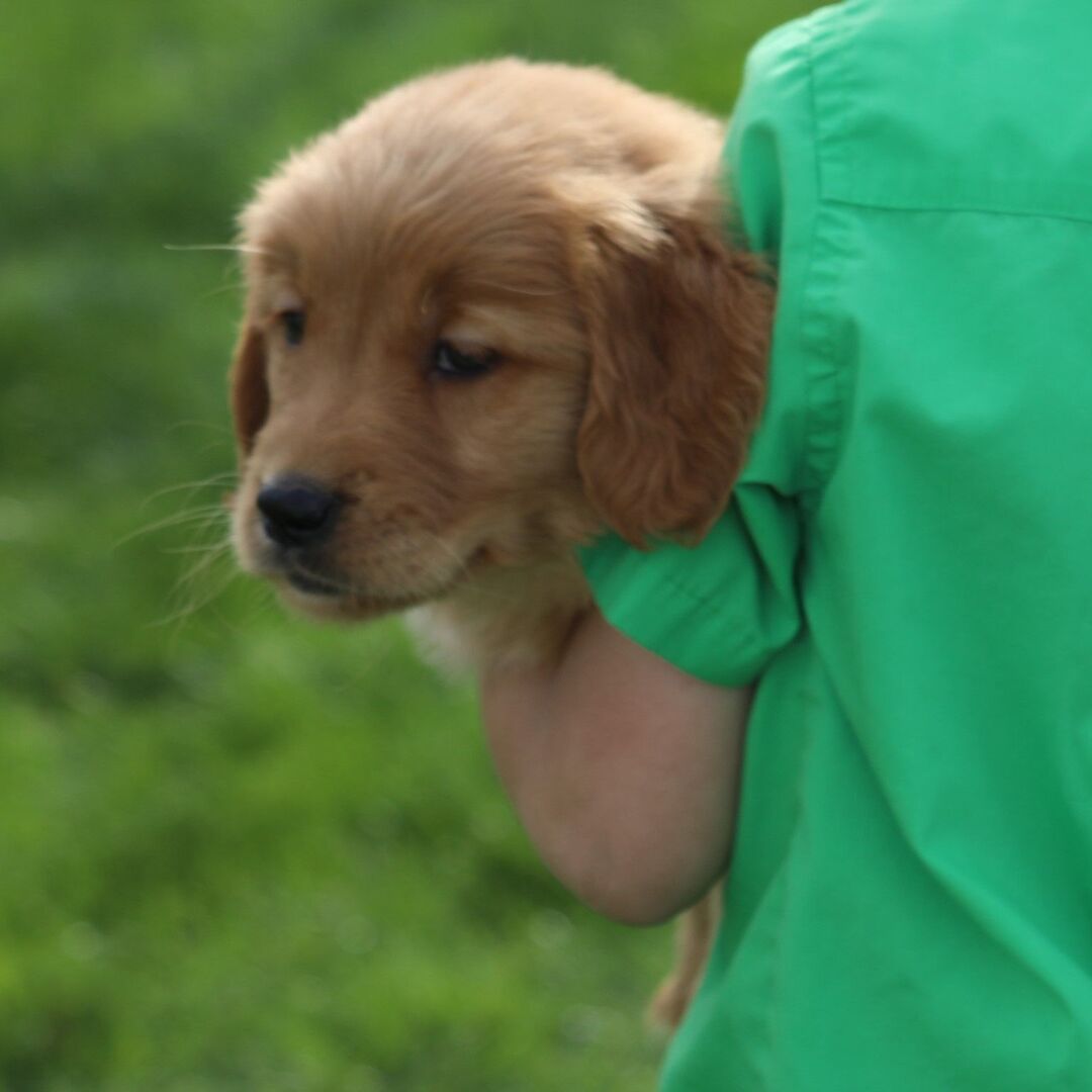 Hi, I'm Buttercup! I'm a 9-week-old female Golden Retriever with a beautiful dark golden coat, born on March 1, which makes me a Pisces pup. I am ready now to plan my trip to my forever family. Once I reach my adult size, I'm expected to weigh between 55–65 lbs. I'm AKC registered. I can't wait to bring my puppy joy and cuddles into your home.